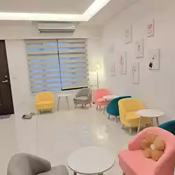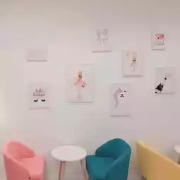 There is a large refrigerator and microwave on the first floor of the lobby, and the clock is a cute rainbow bear 🌈 🧸 (big heart), which is really attractive; the sofas are colorful and use feather lamps, and the murals on the wall are warm, which girls will like 💕🩷🥰