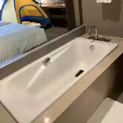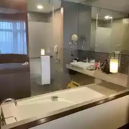 The hair dryer is a Dyson which I think is incomparable and comes with an air purifier. The backup products are L'Occitane and Sebamed. The large bathroom space has separate wet and dry areas, and there is also a large bathtub where you can take a relaxing bath at night.