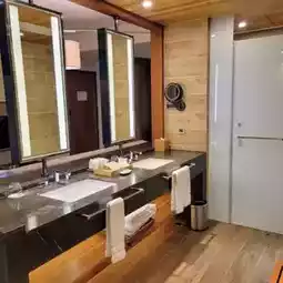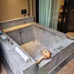 We stayed in a garden king-size bed suite, which had its own hot spring bath in the bathroom. It was a little smaller than expected, but still very comfortable.