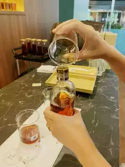 There is a bar area on the 2nd floor of the distillery where you can ask the bartender to make cocktails for you to drink🍸 But I think the most special thing must be the whiskey blending room next door, where the staff will give you four different flavors of whiskey base liquor🍫 🍑🪵🍯 Then you can make a unique and exclusive whiskey according to your preferred flavor