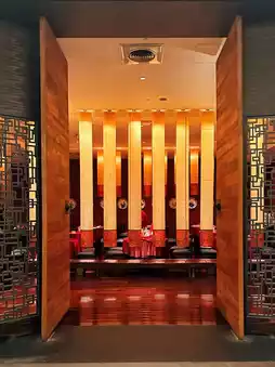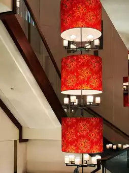 The decoration of the Red House Chinese Restaurant is red Chinese style decoration, which is very grand and festive.