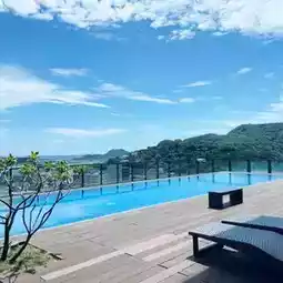 There are hot and cold springs in the room, the bathroom is very spacious, and the sea view is quite nice!