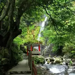 Wufengqi Waterfall on the west side of Jiaoxi Township is a famous scenic spot in Jiaoxi Township, Yilan County. Wufengqi Waterfall is located at the junction of the Xueshan Mountains and the Lanyang Plain. The name comes from the fact that there are five peaks lined up behind the waterfall, which looks like a triangular flag, so it is called "Wufengqi Waterfall."