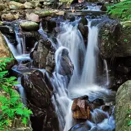 Wufengqi Waterfall is 100 meters long and is divided into three layers. The upper waterfall is about 50 meters high and flows down from the top of the canyon. The middle waterfall passes through the mountain wall and is about 30 meters high. The lower waterfall is about 20 meters high. There is a naturally formed small pool under the waterfall with very clear water. The Wufengqi area has a natural condition of terrain height difference due to the influence of faults. Coupled with the rainy climate in Jiaoxi, the water flow is quite abundant. After continuous scouring, the hard four-sided sandstone is exposed. The river then flows through the broken cliffs composed of four-sided sandstone, forming a series of waterfalls in Wufengqi.