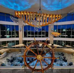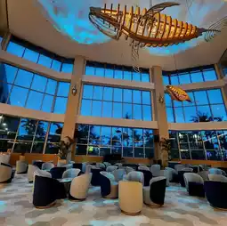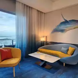 Features: Located near Wushigang in Yilan, the Keduo Plaza Hotel boasts a modern and innovative exterior. The interior incorporates many marine elements, such as a very large whale model suspended in the lobby, which is quite spectacular. The guest rooms are also designed with a marine theme, offering a broad and refreshing view that soothes the mind and spirit. The rooms are spacious and comfortable, with complete amenities, and even offer a distant view of Turtle Island, creating a beautiful and memorable scenery!