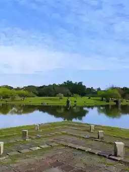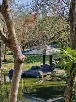 It has a vast forest and a large lake, small pavilions...