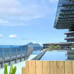 There is also a 150-square-meter B1F game + fitness facility space, as well as an open-air hot spring bath on the rooftop with a view of Kameyama Island, where you can enjoy the beautiful sea view.