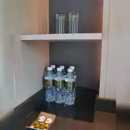 This time the room type is the hotel building of the wind, the room facilities are modern minimalist style, the bed can choose to 2 single beds or 1 queen bed, outside a small balcony, the window can see the scenery of Reef City ~ There is an AI smart butler in the cabinet, from alarm clock, to what attractions and food around the hotel can find "Little Meixi" for you to answer 😉 There is a long sofa on the right side of the door, resting in the afternoon, really relaxing ~ There is a small coffee table next to it, some welcome snacks 😺 In addition, there is a mini in the room bar, all the drinks are free, while there is plenty of bottled water available, and there is a coffee machine~