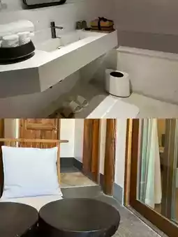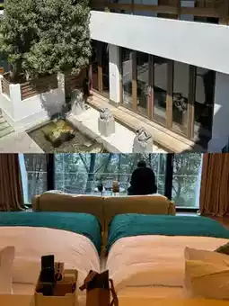 It is very comfortable to sleep with the bedding made of Tencel material. The warm-toned design also has the comfort of home. The bathroom part is a separate shower room.