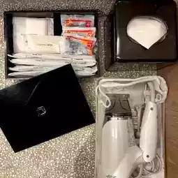 Then there is the washbasin where toothpaste, toothbrushes, cotton swabs, cosmetic cotton pads, hair dryers and earplugs are also available.
