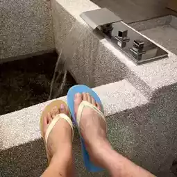 After playing all day, I am very tired! Of course, you have to take a dip in a hot spring to relax.
