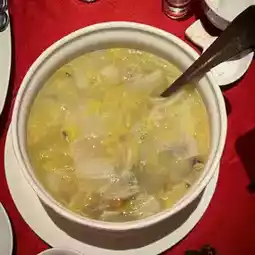 The final course was a slow-cooked cabbage and duck soup! The large portion surprised us! The rich broth, simmered with duck bones, was very fragrant and sweet, thanks to the large amount of cabbage, making it very thick and not greasy at all.