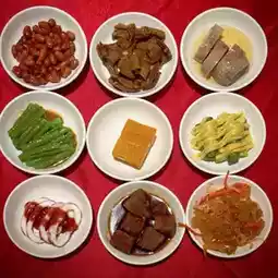 First up was the very rich Red House Small Banquet! It included squid, green beans, braised beef, drunken chicken, mustard asparagus, honey pumpkin, and jellyfish.