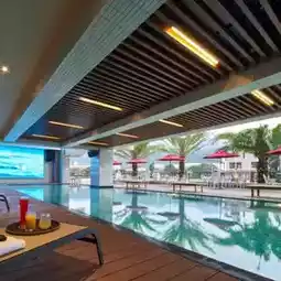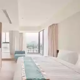 Located in the first row of the Guishan Island sea view, every room offers a 180-degree view of the sea. Guests staying in the sea view rooms can directly overlook Guishan Island and the infinite sea view, providing a lazy and comfortable atmosphere. The spacious and comfortable rooms are decorated with gentle and warm tones, giving you a relaxing vacation vibe. Each room also has a private balcony for resting. The hotel also features a swimming pool, a cinema with surround sound, a café, and a KTV.
