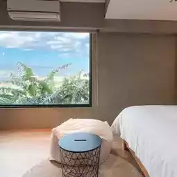 The room design is minimalist with a touch of industrial style, offering both texture and comfort. The lighting in the room is excellent, and the window view overlooks a vast sea of rice fields. The room is equipped with a Dyson hairdryer, Marshall speakers, and a Nespresso capsule coffee machine. You can wake up naturally, perfectly fitting the relaxed vacation mode.