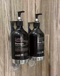 In addition to bottled water, the room also provides bottled black soybean milk and free snacks, which are Yilan's specialty ox-tongue biscuits. There are rooms with and without bathtubs, with similar sizes, and the shower area has a dry and wet separation. The hotel provides herbal bath products.