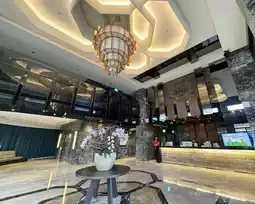 As for the hotel itself, it feels very new and clean. The lobby is bright and well-lit, not giving off a rural town vibe. The hotel has two adorable lion mascots named Peng Peng and Song Song, which can be seen on room cards and packaging of in-room amenities.