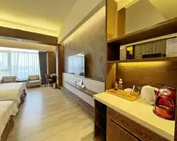 There aren't many rooms on each floor, and the soundproofing is quite good, making it generally very quiet. The twin rooms are very spacious, with enough space to open all the suitcases for a family. The wooden furniture in the room gives a homely feel, and the wooden floors are comfortable to walk on. The room offers a panoramic view of Luodong City, with a vast sky that feels very open.