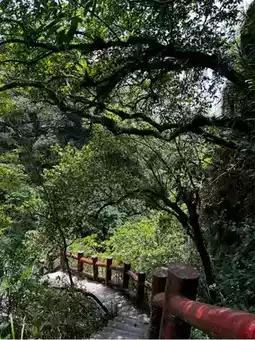 Mong Dong Keng Waterfall is located near Jiaoxi City, making it an ideal short-distance travel spot with convenient transportation. Here, you can enjoy the magnificent waterfall's scenery up close, and the built-in stairs allow you to climb to the top of the falls for beautiful views of the vast plains below.