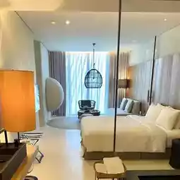 The room design incorporates natural elements and is fully equipped for a comfortable feel. The Mini bar has a unique design, shaped like a giant egg. The room also comes with a private hot spring pool, where you can slow down, relax and enjoy yourself.
