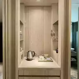 The hotel's guest rooms are designed with a wood-based feel, combining Japanese Zen style with modern elements. They are fully equipped and very comfortable. The room is also equipped with an independent hot spring pool, allowing guests to enjoy the fun of hot spring bathing in a private environment. The most special thing is that the hotel has an infinity hot spring swimming pool on the top floor, with a beautiful view of Guishan Island in the distance.