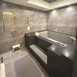 Equipped with a king-size hot spring bathtub/double sink/tatami area