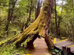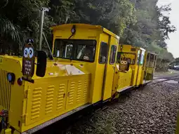 The Taipingshan Bungee Railway is a ginger-colored bungee train with several suspended carriages that travels through the mountains and forests. As the clanging sounds echo, the train continues to run through the towering primitive forests, occasionally emitting a "woohoo" whistle, adding to the fun and interest.