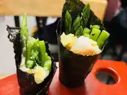 There is a row of waiting chairs outside the store, and there is often a long queue during meal time. We deliberately came a little later to avoid the crowd and wait for the second group. Inside is a very traditional Japanese restaurant, and the small shop is full of gourmets. Remember to get the limited edition miso soup first. We ordered a mix of sushi, including the sweet tofu sushi that my son loves, fried pork with burdock, and deep-fried pork cutlet with curry rice. The coating on the pork cutlet was not too thick, and the curry sauce even had corn kernels in it. My son and husband really enjoyed the meal. I also ordered mashed potato salad, and mayonnaise was placed on the side, which is good for me as I don’t eat mayonnaise. The shrimp and asparagus roll won the first place that night. The shrimp was fresh and plump, the asparagus was crisp and generous, and a little mashed potato was added in it. It was delicious🤤