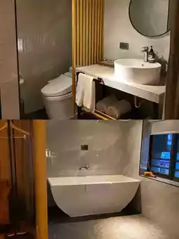 Bathroom facilities include a hot spring bathtub 🛁, automatic toilet, hair dryer, and toiletries. The hot spring hotel pays great attention to privacy 👍.