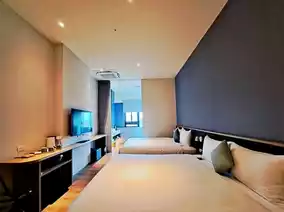 The bed is a Simmons mattress, and there is a cute smart speaker that can chat with me~