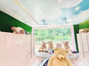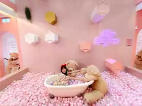 The whole pink bubble on the first floor has bears that are super easy to take pictures🐻You can put the bears in various poses or make fun of them (?!)