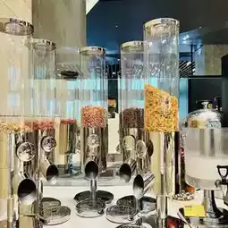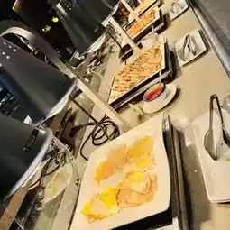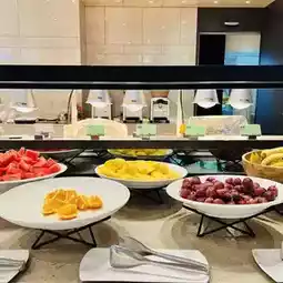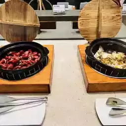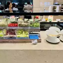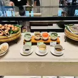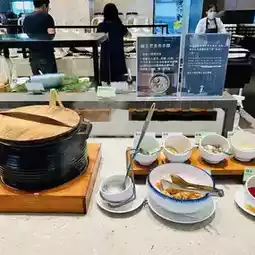 Environment/Facilities - The restaurant can be eaten until 12 o'clock, which is probably the first in Taiwan! The dishes are diverse, especially Yonghe salty soy milk garlic sausage, chicken and child bowl, sesame oil pork, Tainan famous beef soup, fish ball rice noodles, sashimi, salmon fried rice, Japanese cold noodles, charcoal grilled mushrooms and cauliflower! There are also four kinds of seasonal fruits, freshly fried eggs and muffins, five kinds of cereals, hot soups including miso soup, fresh fish soup, salty porridge, salad bar... The restaurant seats about 200 people