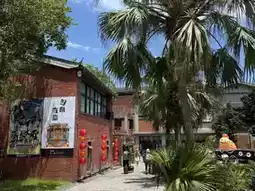 From afar, a red brick tower leaned against a concrete wall covered in vines. The words "Traditional Arts Center" loomed on the wall, reminding visitors of the stories, history, and creative spirit brewing here.
