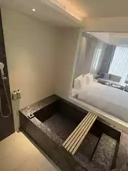 The city center of Jiaoxi is lined with hot spring hotels. This time, we recommend the Kamalan Star Hot Spring Hotel, located in the prime area of Jiaoxi's city center and opened in recent years. The rooms are spacious, about 10 pings (approximately 33 square meters), offering a comfortable stay. The in-room hot spring bath is large and deep, allowing even someone 180 cm tall to lie down and fully enjoy the soaking experience. You can stretch your legs while sitting, making it incredibly relaxing. On the rooftop, there's also a public hot spring pool (swimwear required) with SPA water jets to help you unwind after your journey.