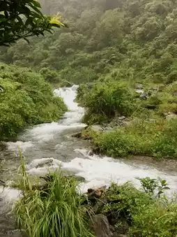 Standing at approximately 30 meters tall, the waterfall cascades down lush green cliffs, with misty droplets carried by the breeze gently brushing your face, offering a refreshing and invigorating experience. Whether you're looking to escape the summer heat or simply connect with nature, this spot feels like a natural air-conditioned haven, helping you leave the hustle and bustle behind.