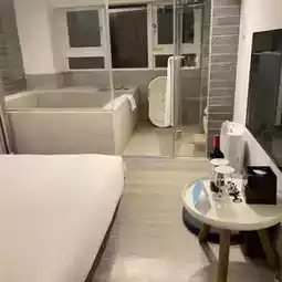 The room has a large bathtub where you can soak from morning to night. You can soak standing, sitting, lying down or using a water gun.