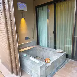The semi-open suite design with a strong Japanese style makes the view wider, and the wooden furniture presents an oriental Zen style of architecture. The garden suites are all located on the first floor, each with an independent garden and landscaping and an open-air sodium bicarbonate hot spring rich in minerals