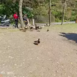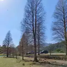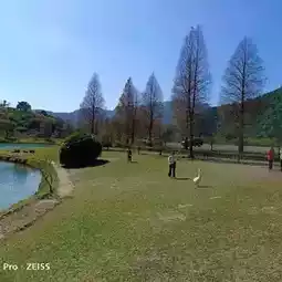 The bald cypress stands amidst the graceful curves of the lake, mountains, and sky, creating a vibrant autumn landscape. Numerous swans and wild geese roam the vast expanses of grass by the lake. Enjoy a relaxing and enjoyable time.