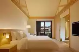 The Yilan Yuanshan Hot Spring has a century-old history. The Westin Yilan Resort is composed of a series of 3-story buildings surrounding a central pool. It is designed in an oriental Zen style hot spring community. All guest rooms are equipped with hot spring baths. There are also free open-air baths. You can see the sky when you look up, which is a unique atmosphere.