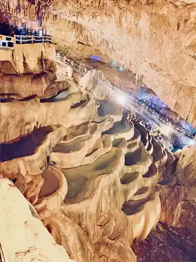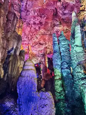 The most distinctive landscape of Jiuxiang Scenic Area is the colorful karst caves. Many of the cave groups developed in the Sinian Period 600 million years ago. It is the largest, most numerous and most peculiar cave community system in China, and is known as the "Karst Cave Museum".