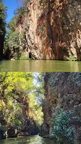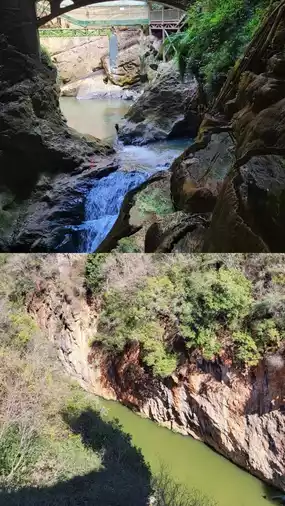 1. Shocking Gorge: As soon as you step in here, a chill hits you 🧊. The gorge is deep and serene, with towering cliffs on both sides. Sunlight can only filter through narrow gaps. Walking on the plank road, with the rushing water below, the roaring sound is like the heartbeat of the earth. Those who are easily scared might feel their hearts race, but this kind of thrill is truly unforgettable. It feels like entering a mysterious subterranean world 🗺️.