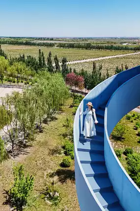 6️⃣ From the top of the viewing water tower, you can take high-angle shots of the main building of the winery and Helan Mountain, just like an aerial view