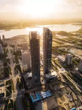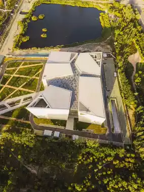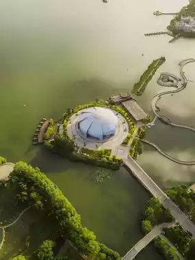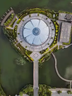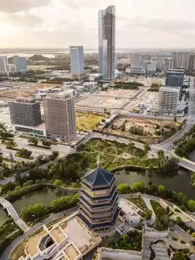 For aerial photography, it is recommended to take off from Yinchuan Rock Art Park to take a bird's-eye view of the entire park. The pavilions are also very photogenic