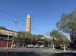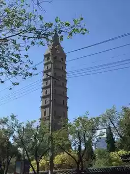 🚗 Chengtian Temple Pagoda, also known as the West Pagoda, is located at No. 76, Jinning South Street, Xingqing District, Yinchuan City, Ningxia Hui Autonomous Region. Chengtian Temple Pagoda is an octagonal eleven-story pavilion-style brick pagoda with a total height of 64.5 meters. The tower is built on a square platform with a height of 2.6 meters and a side length of 26 meters.