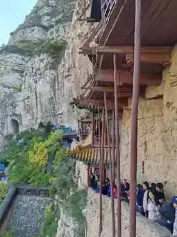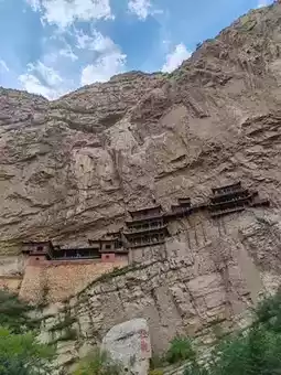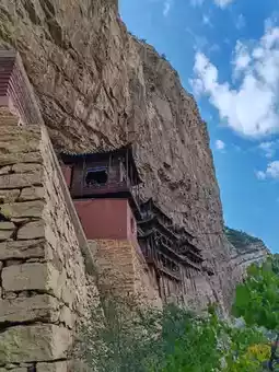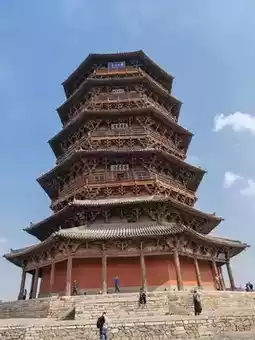 Shanxi Trip: Yingxian Wooden Pagoda, Xuankong Temple || The weather was nice and cool. The Yingxian Wooden Pagoda is a true wonder, but it has been leaning for decades. This is because a leader in the 1980s decided to replace the wooden walls on each floor with wooden lattice windows, which caused the pagoda to lean due to different wind pressures. I also thought of some recent renovations that have turned beauty into ugliness and destroyed the real to create the fake. I hope the leaders who don't know what they're doing will leave our few remaining historical treasures alone. When I arrived at Xuankong Temple, the sky was full of auspicious clouds. I climbed the steps along the cliff and couldn't help but admire the wisdom and perseverance of the ancients.