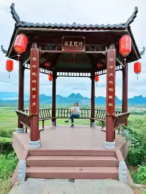 Tea Fun Garden, located in the western suburbs of Yingde City, spans over a thousand acres. From afar, you can see lush green mountains, and up close, tea trees growing side by side. I remember visiting shortly after last year's Spring Festival, and without any prior expectation, I was greeted by a sea of peach blossoms. They were everywhere, near and far, in full bloom—absolutely stunning, leaving me in awe, as if I had stumbled into the legendary Peach Blossom Land. Summer brings a different scene, with clear air, occasional mist, gentle breezes, and vibrant greenery all around.