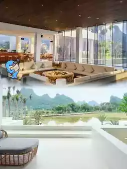 - Design Style: The homestay features a modern and stylish architectural exterior perfectly integrated with the natural scenery, using rammed earth walls and original wood structures to create a wabi-sabi style courtyard, simple yet sophisticated🏡✨.