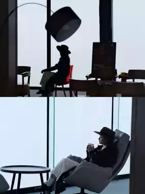 Use floor-to-ceiling windows and restaurant stools to capture the full emotional atmosphere