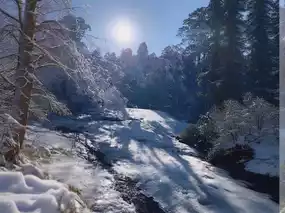 ⛳ Location: Tianshengqiao Scenic Area, a beautiful world covered in ice and snow. Here, ancient trees are dressed in white, and the frozen streams and blue ice waterfalls make you feel like you are in a fairy tale scene.🌲