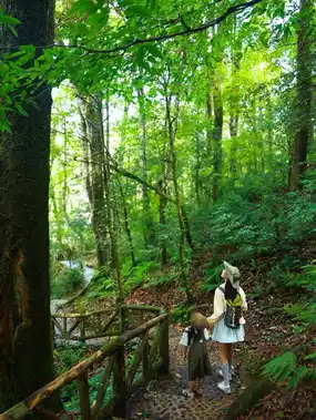 • **Floral Stream**: Century-old trees so thick it takes three people to hug them, bark wrinkled like "Michelin tires" 🍃.